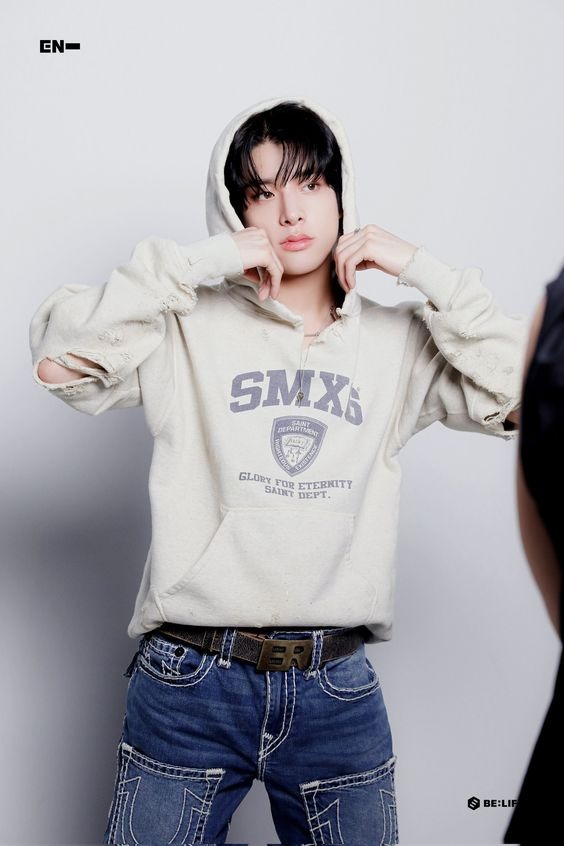Saat pemotretan untuk Weverse Magazine bulan Juni lalu, Jake ENHYPEN tampil santai dengan jaket hoodie dari brand Saint Michael yang dikombinasikan dengan jeans